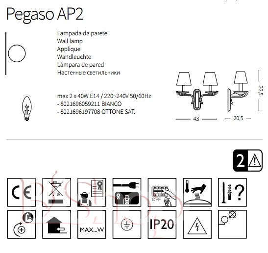 Настенный светильник Ideal Lux PEGASO AP2 OTTONE SATINATO (197708)