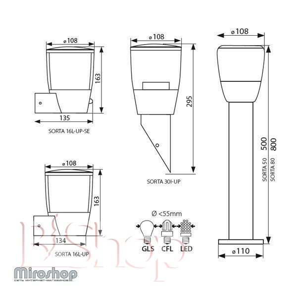 Количество ламп: 1. Тип цоколя: E27. Высота (см): 16.3. Ширина (см): 10.8. Глубина (см): 13.5. Мощность лампы (Вт): 20.