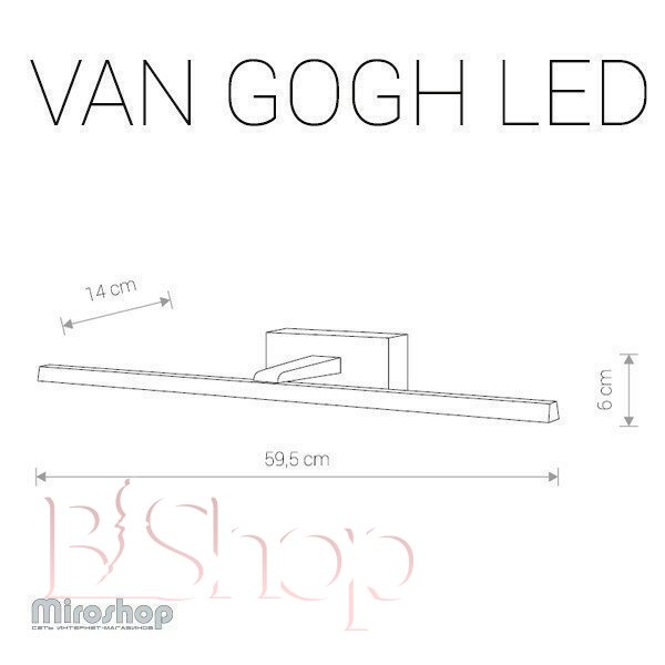Количество ламп: 1. Тип цоколя: LED. Высота (см): 6. Глубина (см): 14. Мощность лампы (Вт): 12. Длина (см): 60.