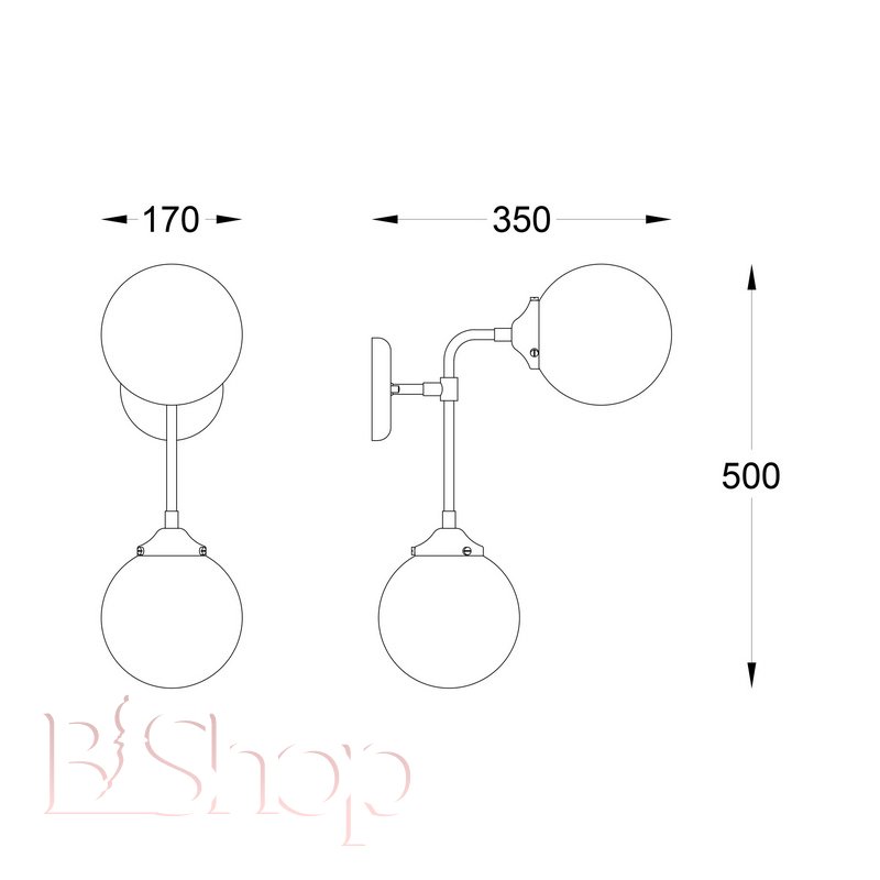 Количество ламп: 2. Тип цоколя: E27. Высота (см): 50. Ширина (см): 17. Глубина (см): 35. Мощность лампы (Вт): 40.