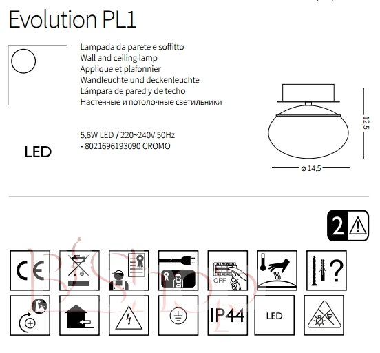 Настенно-потолочный светильник Ideal Lux EVOLUTION PL1 (193090) (23132)