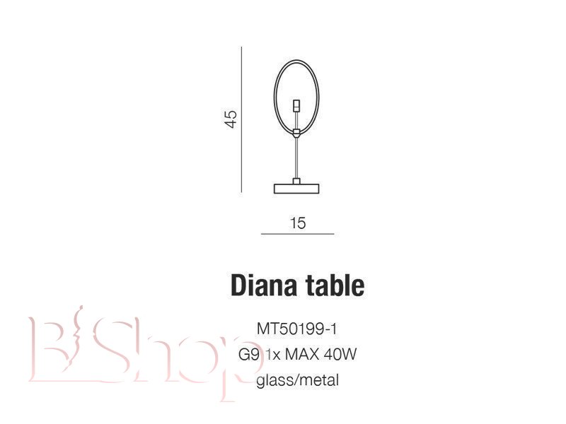 Количество ламп: 1. Тип цоколя: G9. Высота (см): 45. Мощность лампы (Вт): 40. Диаметр (см): 15.