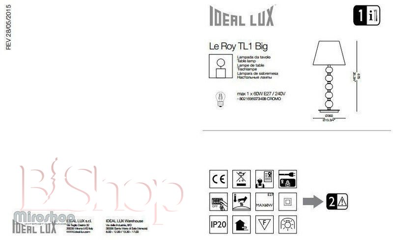 Настольная лампа Ideal Lux LE ROY TL1 BIG (073408) (56287)