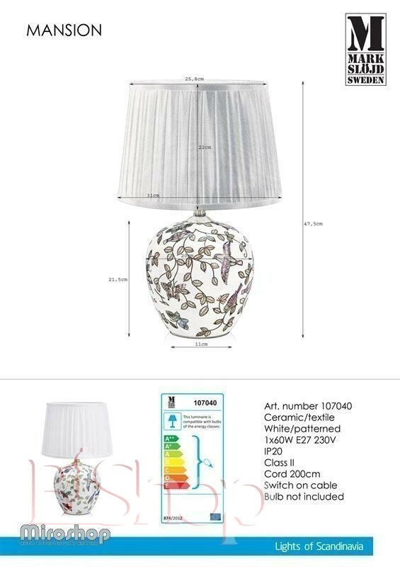 Настольная лампа Markslojd 107040 MANSION (97018)