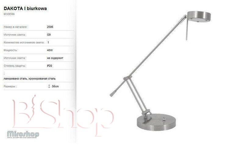 Количество ламп: 1. Тип цоколя: G9. Высота (см): 56. Мощность лампы (Вт): 40.