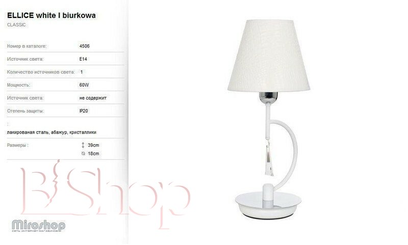 Количество ламп: 1. Тип цоколя: E14. Высота (см): 39. Мощность лампы (Вт): 60. Диаметр (см): 18.