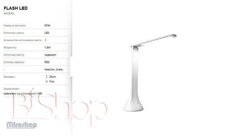 Количество ламп: 1. Тип цоколя: LED. Высота (см): 25. Ширина (см): 7.8. Мощность лампы (Вт): 1.8.