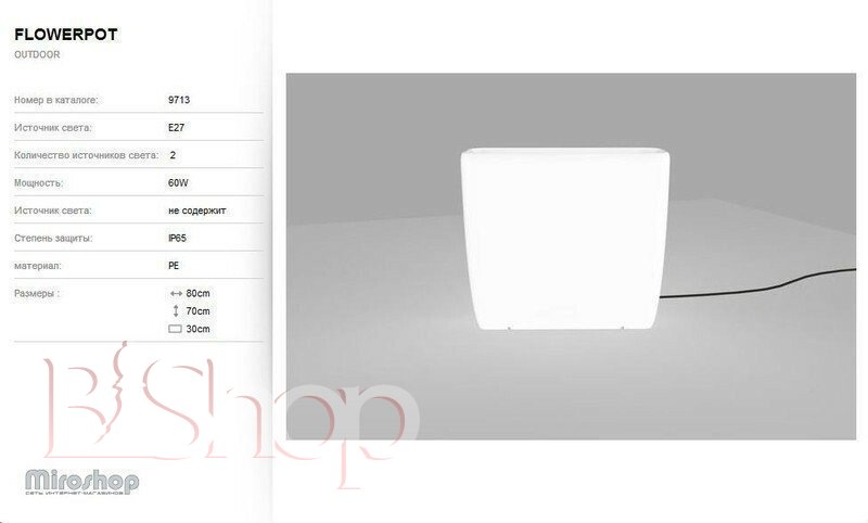 Количество ламп: 2. Тип цоколя: E27. Высота (см): 70. Ширина (см): 30. Мощность лампы (Вт): 60. Длина (см): 80.
