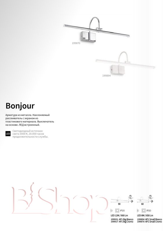 Количество ламп: 1. Тип цоколя: LED. Высота (см): 17.5. Ширина (см): 90. Глубина (см): 18. Мощность лампы (Вт): 12.