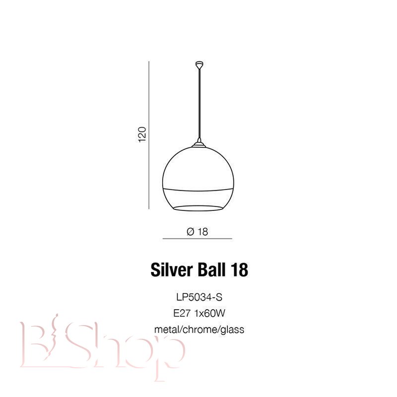 Подвесной светильник Azzardo AZ0731 Silver ball 18 (LP5034-S) (16010)