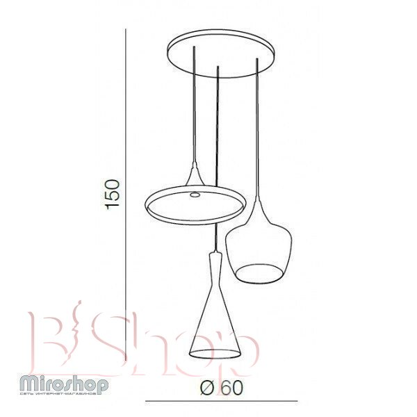 Количество ламп: 3. Тип цоколя: E27. Высота (см): 150. Мощность лампы (Вт): 60. Диаметр (см): 60.