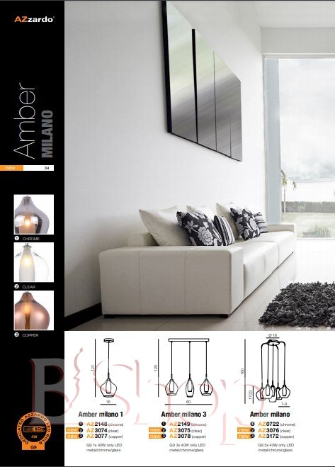 Подвесной светильник Azzardo AZ0722 Amber Milano (chrome) (2285-5P-CH) (15873)