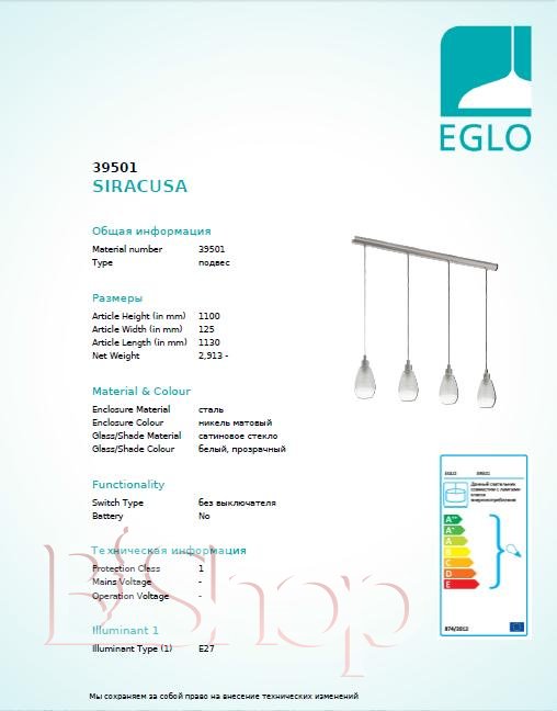 Количество ламп: 4. Тип цоколя: E27. Высота (см): 110. Ширина (см): 12.5. Мощность лампы (Вт): 60. Длина (см): 113.