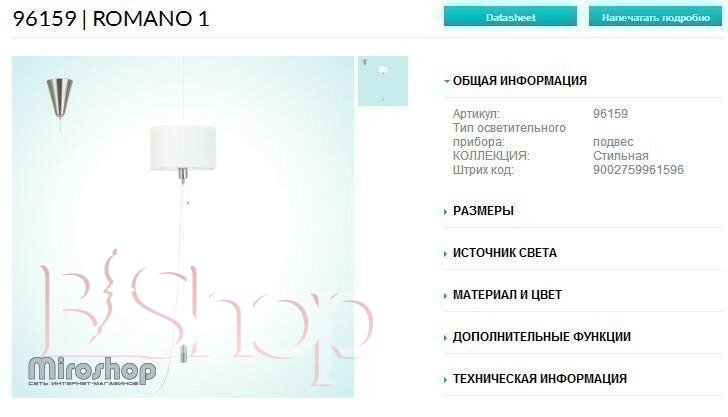 Подвесной светильник Eglo 96159 Romano 1 (96159)
