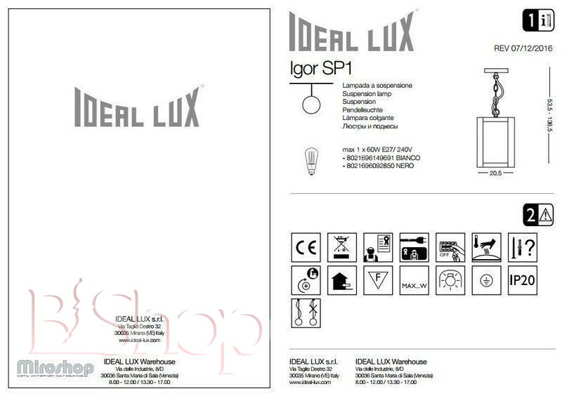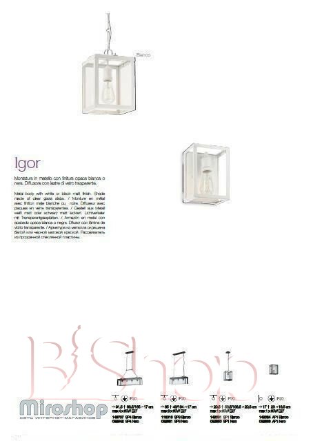 Подвесной светильник Ideal Lux IGOR SP1 NERO (092850)