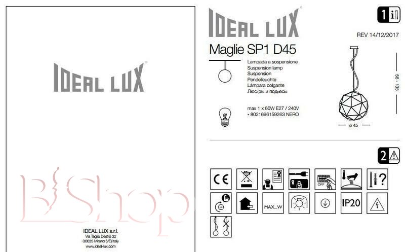 Подвесной светильник Ideal Lux MAGLIE SP1 D45 (159263) (13384)
