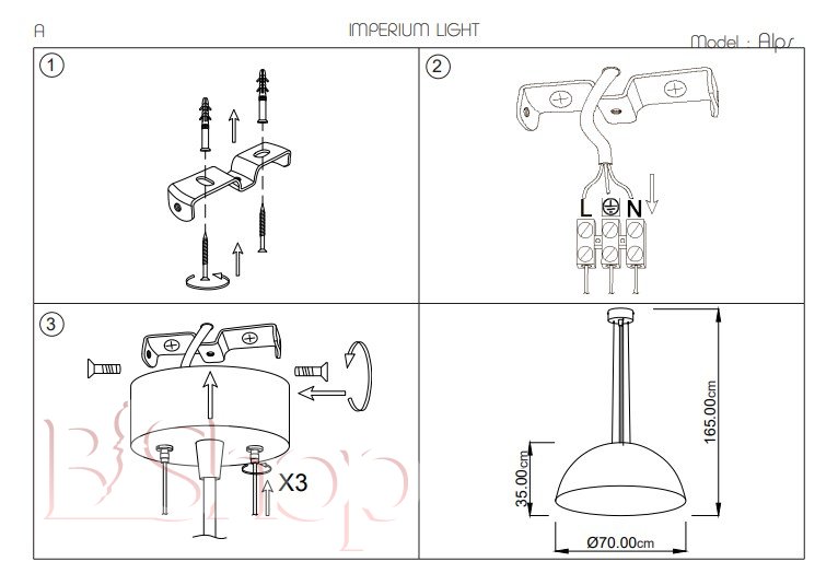 Количество ламп: 3. Тип цоколя: E27. Высота (см): 165. Мощность лампы (Вт): 60. Диаметр (см): 70.