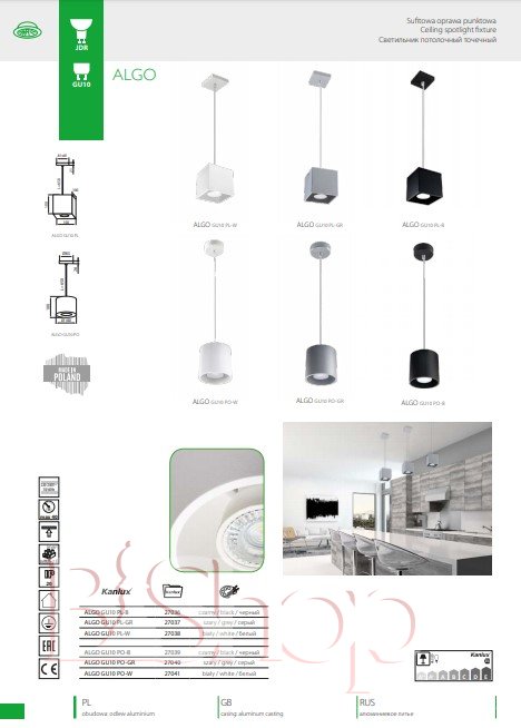 Подвесной светильник Kanlux ALGO GU10 PL-B (27036) (25258)
