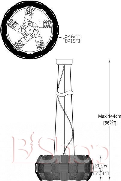 Количество ламп: 3. Тип цоколя: E27. Высота (см): 156. Мощность лампы (Вт): 24. Диаметр (см): 36.
