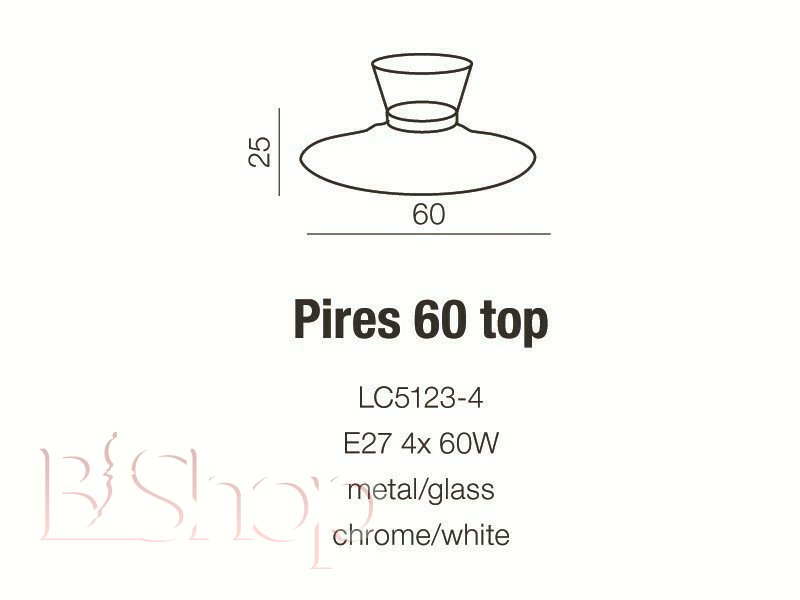 Количество ламп: 4. Тип цоколя: E27. Высота (см): 25. Мощность лампы (Вт): 60. Диаметр (см): 60.