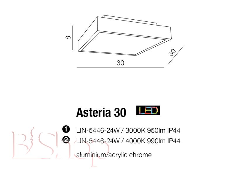 Количество ламп: 1. Тип цоколя: LED. Высота (см): 8. Ширина (см): 30. Мощность лампы (Вт): 24. Длина (см): 30.