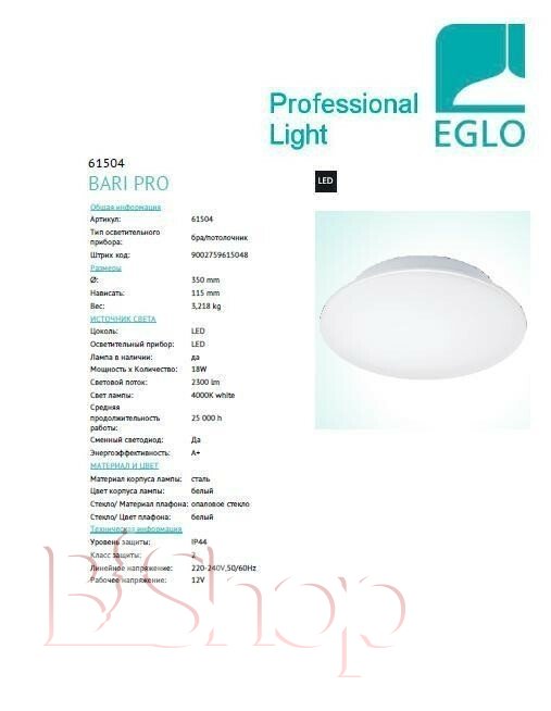 Количество ламп: 1. Тип цоколя: LED. Высота (см): 11.5. Мощность лампы (Вт): 18. Диаметр (см): 35.