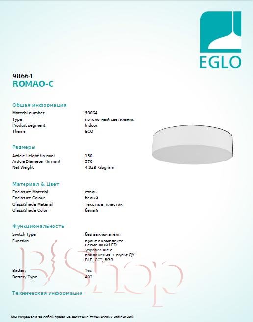 Количество ламп: 1. Тип цоколя: LED. Высота (см): 15. Мощность лампы (Вт): 33. Диаметр (см): 57.