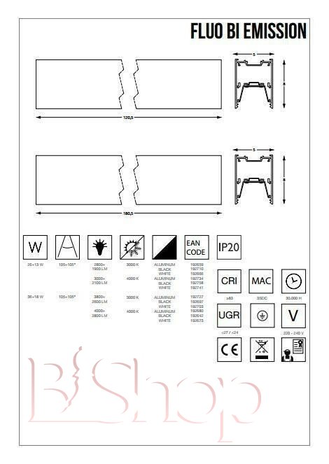 Количество ламп: 1. Тип цоколя: LED. Высота (см): 8. Ширина (см): 5. Мощность лампы (Вт): 39. Длина (см): 180.5.