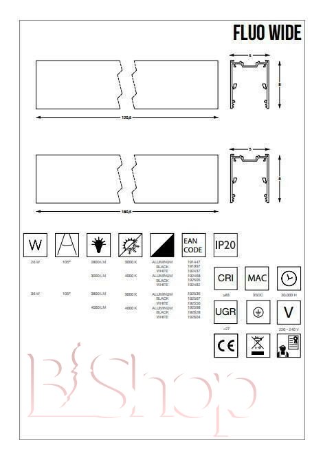 Количество ламп: 1. Тип цоколя: LED. Высота (см): 8. Ширина (см): 5. Мощность лампы (Вт): 26. Длина (см): 120.5.