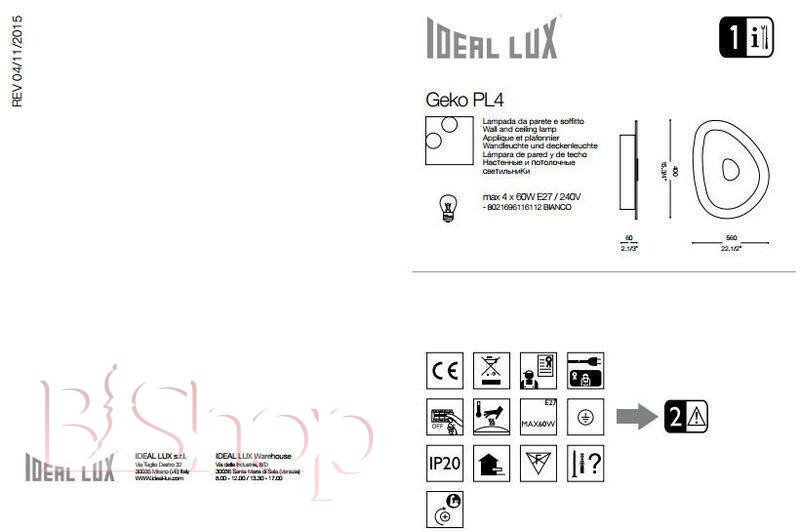 Потолочный светильник Ideal Lux GEKO PL4 (116112) (88073)