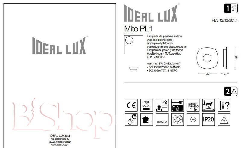 Потолочный светильник Ideal Lux MITO PL1 BIANCO (175676) (13365)