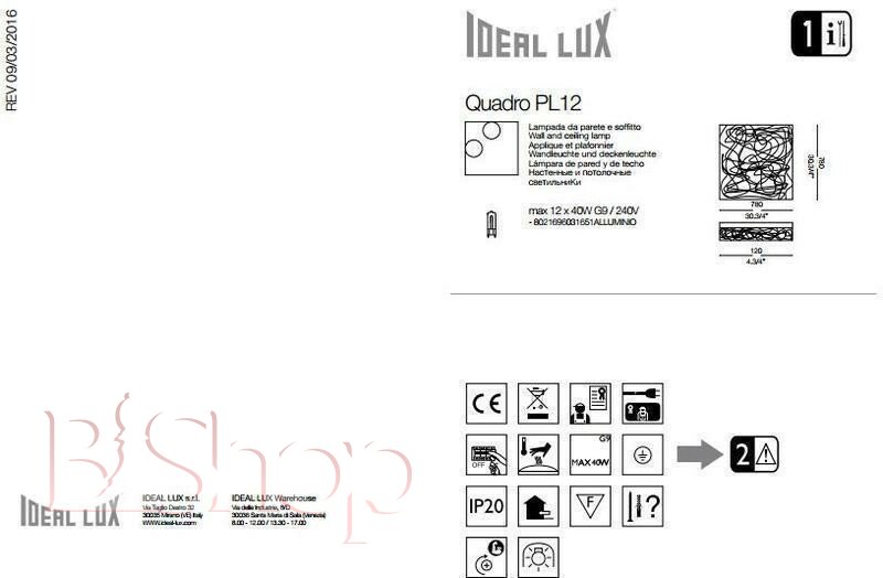 Потолочный светильник Ideal Lux QUADRO PL12 (031651) (48856)