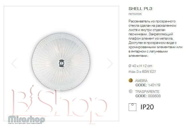 Потолочный светильник Ideal Lux SHELL PL3 TRASPARENTE (008608)