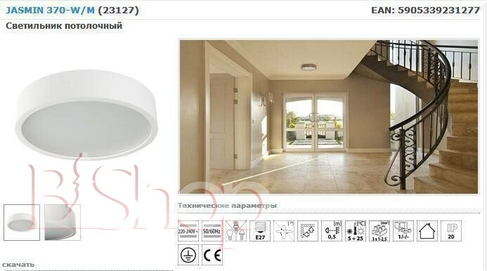 Потолочный светильник Kanlux JASMIN 270-W PLAFON.DREW. max 60W (23123) (84551)