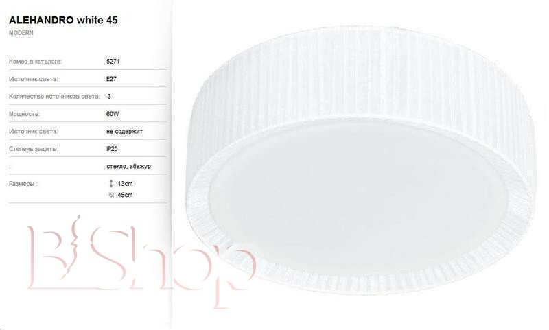 Количество ламп: 3. Тип цоколя: E27. Высота (см): 13. Мощность лампы (Вт): 60. Диаметр (см): 45.