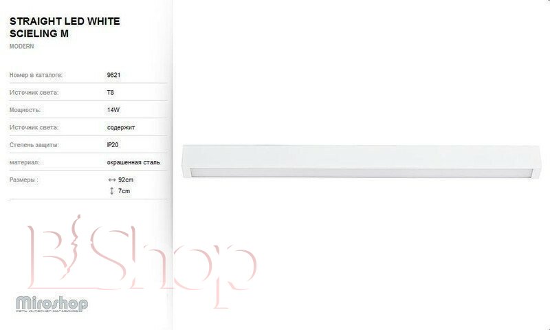 Количество ламп: 1. Тип цоколя: G13. Высота (см): 7. Мощность лампы (Вт): 14. Длина (см): 92.