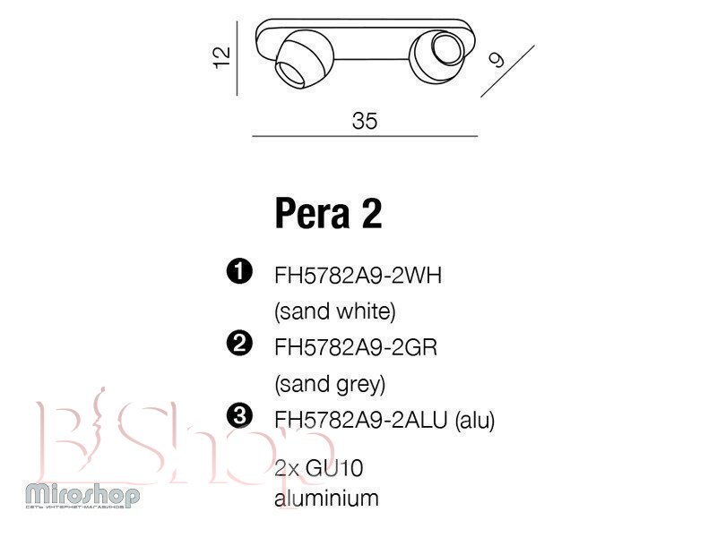 Количество ламп: 2. Тип цоколя: GU10. Высота (см): 12. Ширина (см): 35. Длина (см): 9.
