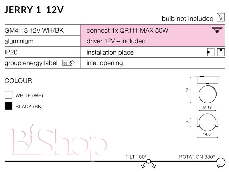 Количество ламп: 1. Тип цоколя: GU10. Высота (см): 19. Ширина (см): 12. Мощность лампы (Вт): 50.