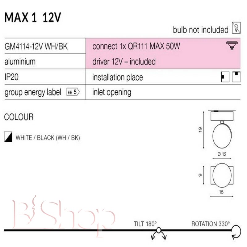 Спот Azzardo AZ1372 Max 1 12V (white/black) (GM4114-12V-WH-BK)