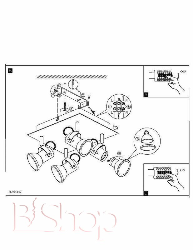 - Количество ламп: 4 шт