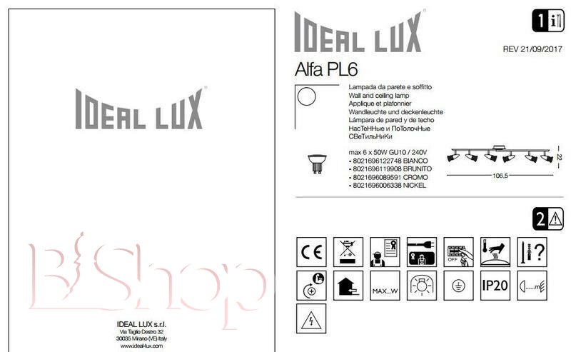 Спот Ideal Lux ALFA PL6 NICKEL (006338)