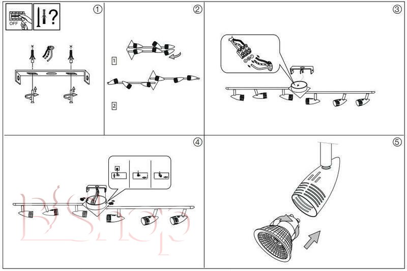 Количество ламп: 6. Тип цоколя: GU10. Высота (см): 16. Глубина (см): 22. Мощность лампы (Вт): 50. Длина (см): 106.5.