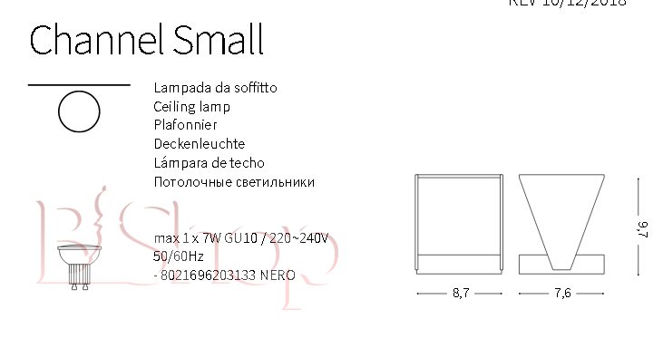 Количество ламп: 1. Тип цоколя: GU10. Высота (см): 10. Ширина (см): 8. Мощность лампы (Вт): 7. Длина (см): 8.