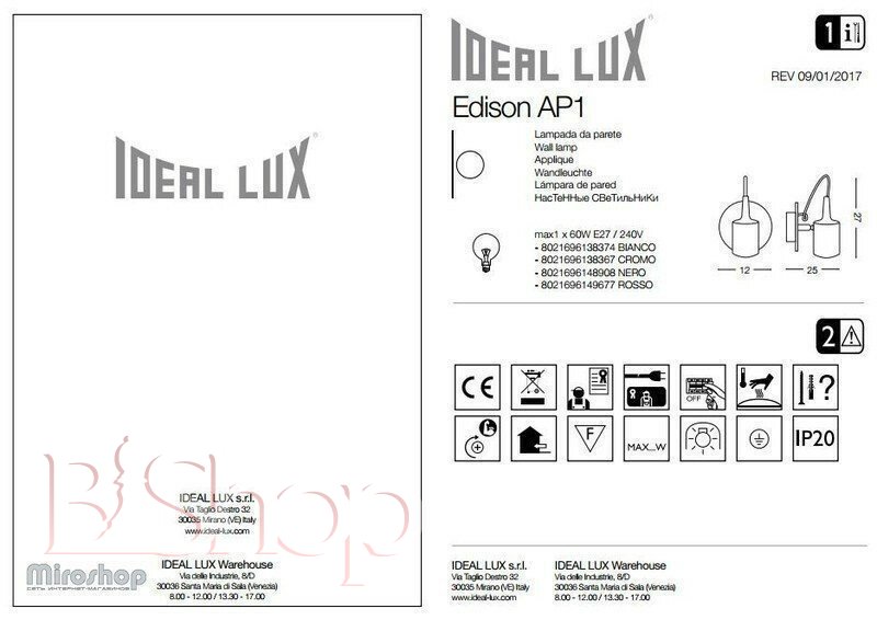 Спот Ideal Lux EDISON AP1 CROMO (138367) (23046)