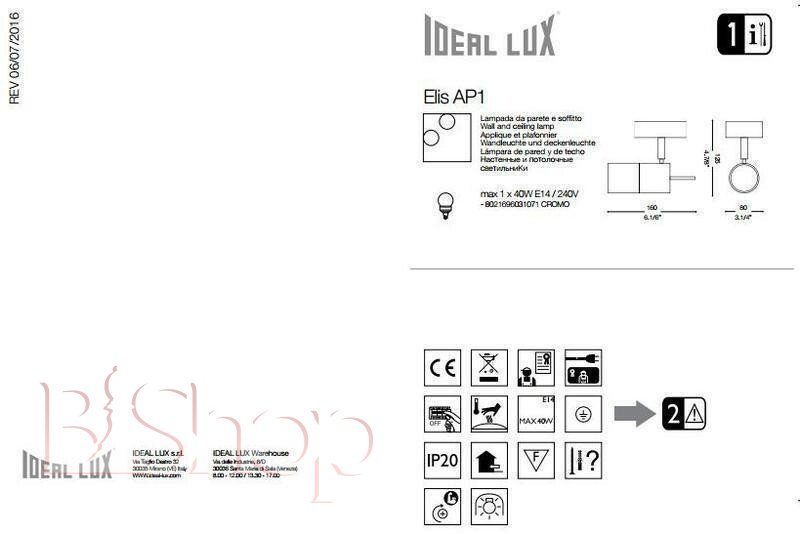 Спот Ideal Lux ELIS AP1 (031071) (48452)
