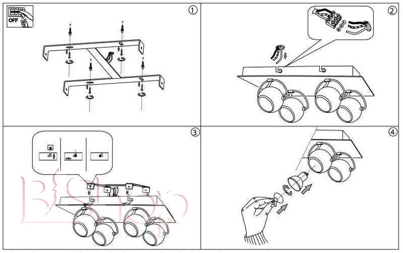 Количество ламп: 4. Тип цоколя: GU10. Высота (см): 15. Ширина (см): 29. Мощность лампы (Вт): 28. Длина (см): 29.