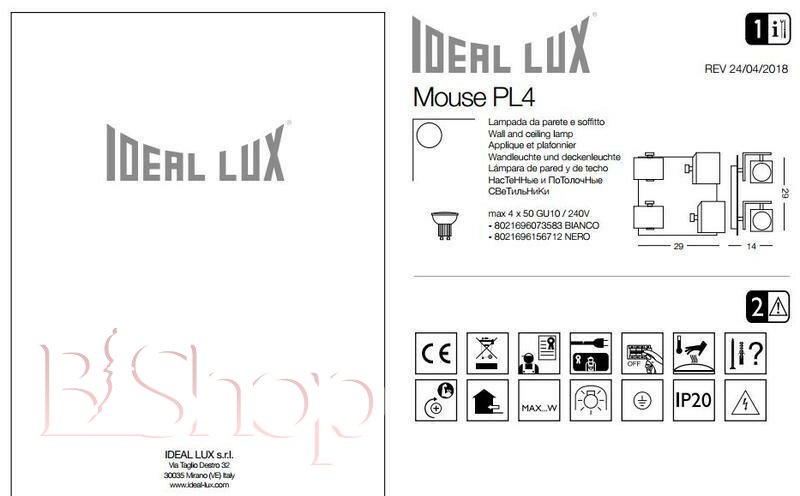 Спот Ideal Lux MOUSE PL4 BIANCO (073583) (13025)