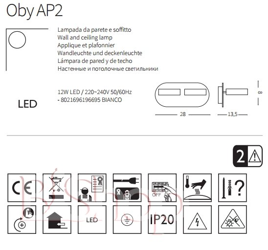 Спот Ideal Lux OBY AP2 (196695) (23103)