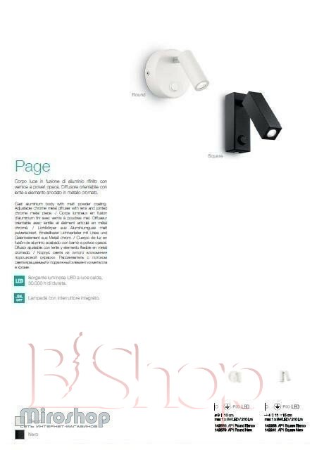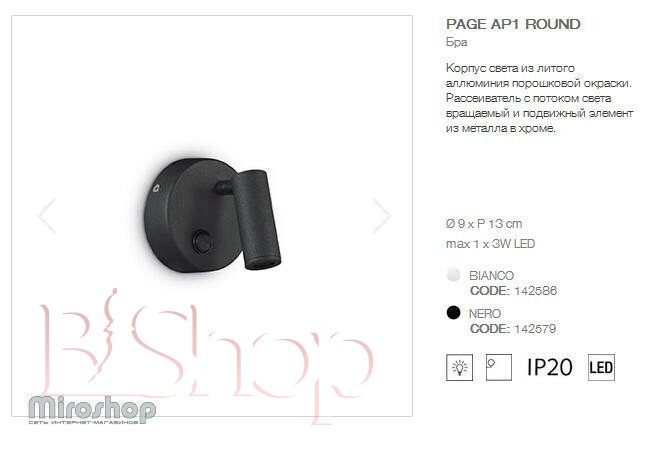 Спот Ideal Lux PAGE AP1 ROUND NERO (142579) (96757)