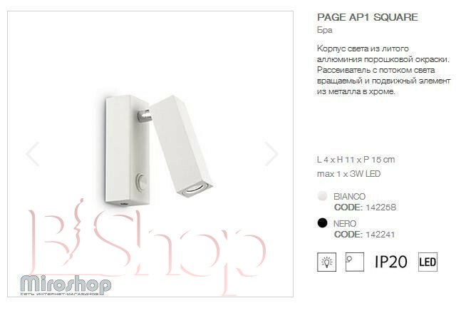 Спот Ideal Lux PAGE AP1 SQUARE BIANCO (142258) (93750)